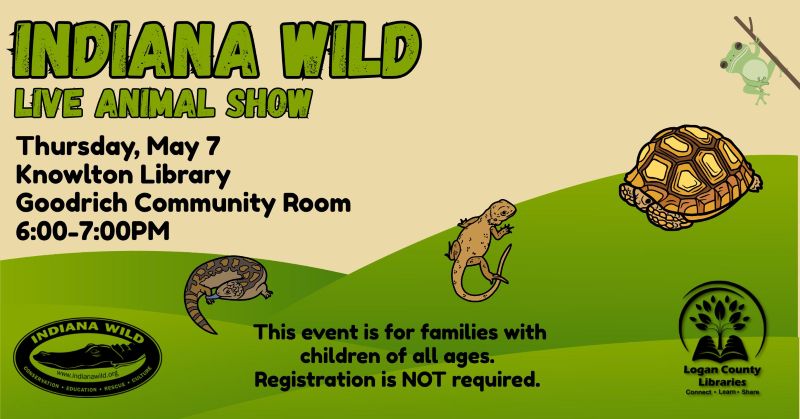 Thu, Apr 23 from 6:00pm to 7:00pmFamilies with children of all ages can come to Knowlton Library Thursday, April 23 from 6:00-7:00pm for the BUG-Show with live bugs.