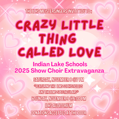 The Indian Lake High School show choir, The Meistersingers, will present their annual EXTRAVAGANZA on Saturday, November 8th at 7 pm and Sunday, November 9th at 6 pm in the high school auditorium.