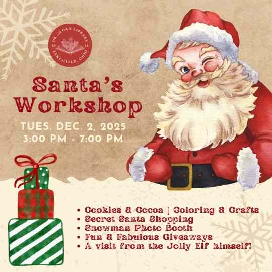 This holiday season join the Dr. Sloan Library in Zanesfield for Santa’s Workshop on December 2, 2025!