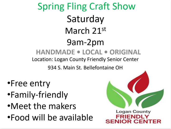 Spring Fling Craft Show will be held at the Logan County Friendly Senior Center on Saturday March 21st from 9am – 2pm.