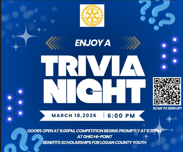 The Bellefontaine Rotary Club invites the community to a fun evening of trivia competition on Wednesday, March 18, 2026, at the Ohio Hi-Point Cafeteria.