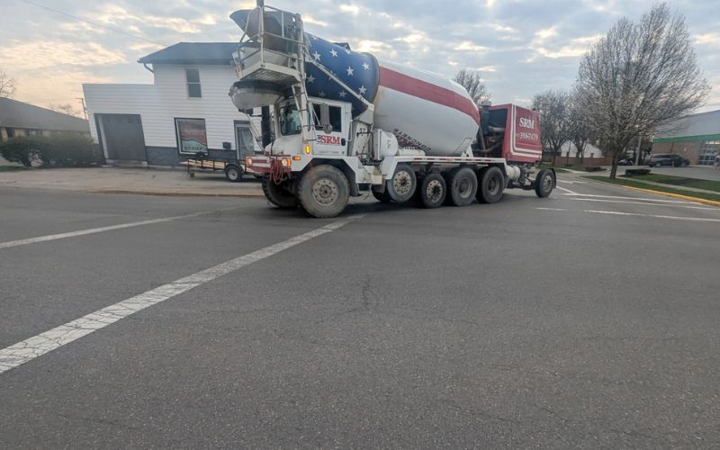 Main Street in downtown Bellefontaine was closed Monday evening following a serious accident involving a concrete truck and a pedestrian.