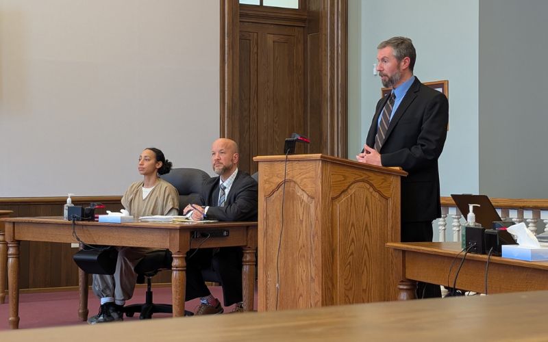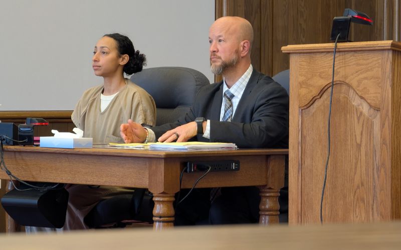 Small sat stonefaced as Assistant Prosecutor Nathan Yohey read a statement from a family member about how her daughter is now thriving; however, she has had several medical issues.