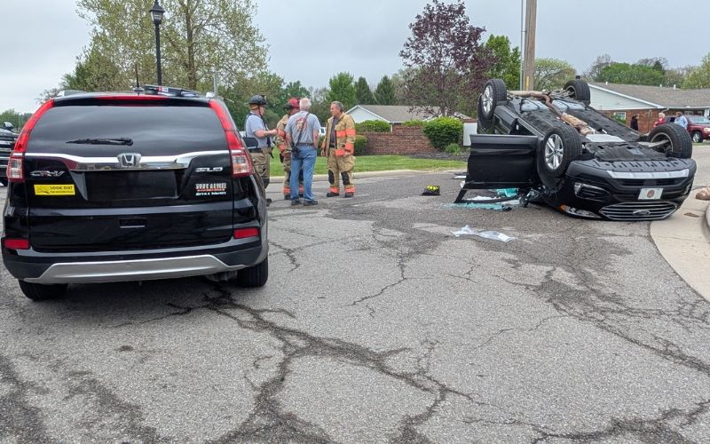 The impact caused one of the vehicles to overturn, coming to rest on its roof.