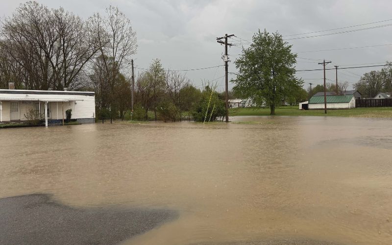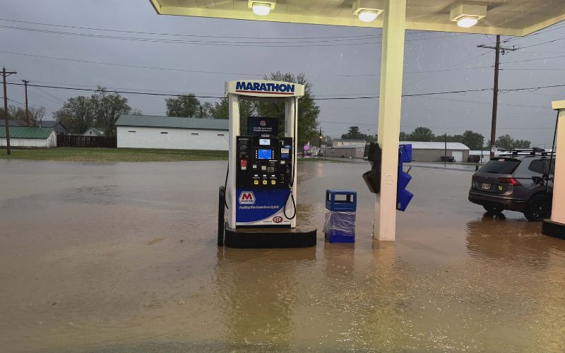 One of the most significant trouble spots was along State Route 366, where heavy rainfall quickly overwhelmed drainage systems and caused water to cover portions of the roadway.
