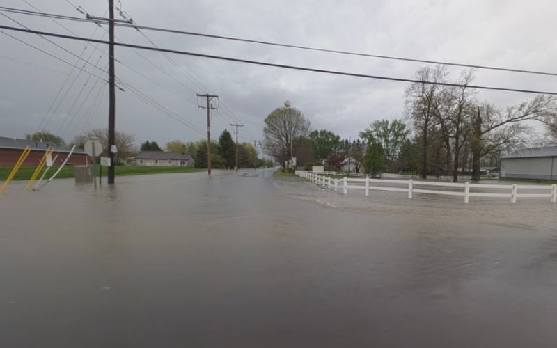 Drivers encountered hazardous conditions, with water pooling over the pavement in low-lying sections.