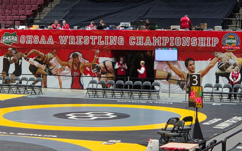 Championship Sunday at the OHSAA State Wrestling Tournament at the Jerome Schottenstein Center in Columbus is nearing its conclusion, as Session 4 has wrapped up and only the championship matches remain.