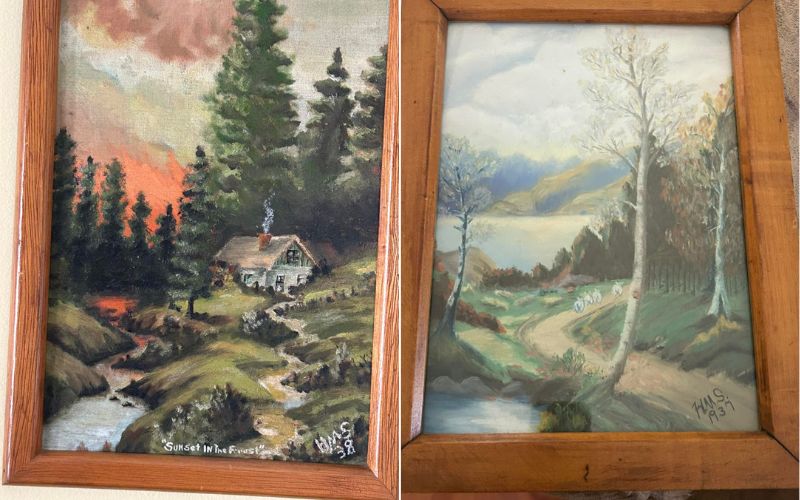 Johnson also reflected on her family’s legacy of creativity: “My mother was an awesome painter, but I didn’t inherit the talent. She painted these pieces in 1938 when she was just 18 years old. They hang in my living room, framed by my grandfather’s hands.”