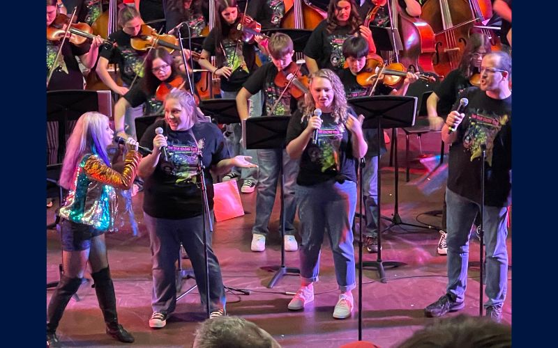 The Bellefontaine City Schools Orchestra and BCS Choirs delivered an electrifying performance with renowned musicians Mark Wood and Laura Kaye in the BHS Gym on Thursday night.