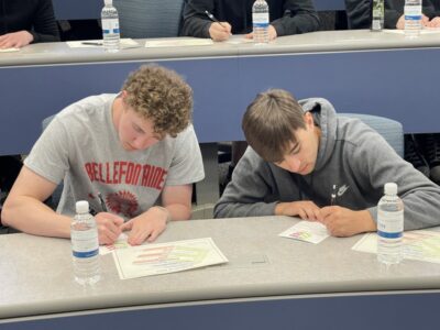 The Bellefontaine High School Class of 2023 was celebrated during a 3E Signing Event in the Distance Learning Center Wednesday morning.