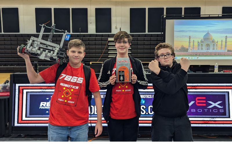 Adding to the day’s accolades, team 7865X- Chandler Herne, Landon Severt, and Christian Sterling won the Innovate Award, a prestigious recognition for their creative engineering and design.