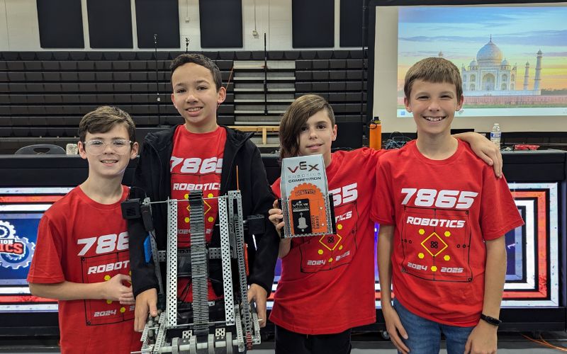 Team 7865A- Anthony Carter, Cam Rutan, Owen Smith, and Camden Vollrath on the other hand, took home the Judges Award, which recognizes a team that embodies the ideals of teamwork, persistence, and skill.