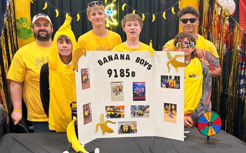 At the middle school level, Team 9185B, the “Banana Boys,” showcased determination across 10 matches over three days, finishing with a 6-4 record and placing 38th. Their strong teamwork and sportsmanship earned them a spot in the tournament bracket after being selected by Team 9050E, “Galaxy,” from South Dakota. The alliance was eliminated in the opening round.
