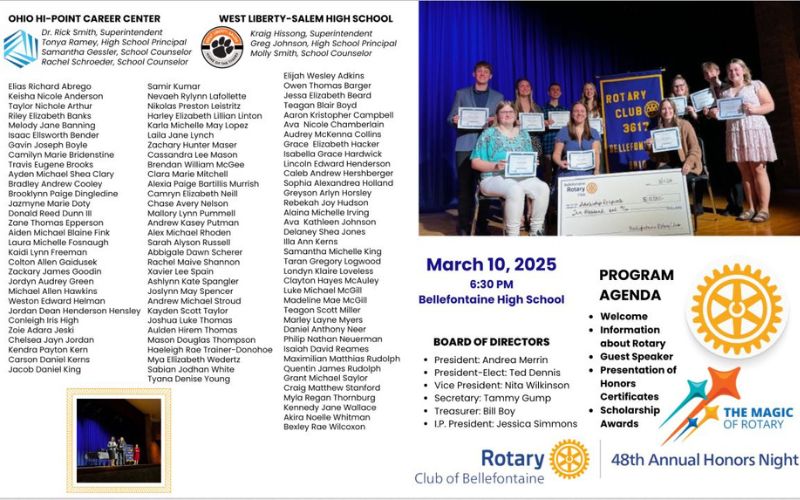 The Bellefontaine Rotary Club hosted its 48th Annual Rotary Honors Night, honoring 260 students for outstanding academic achievements.