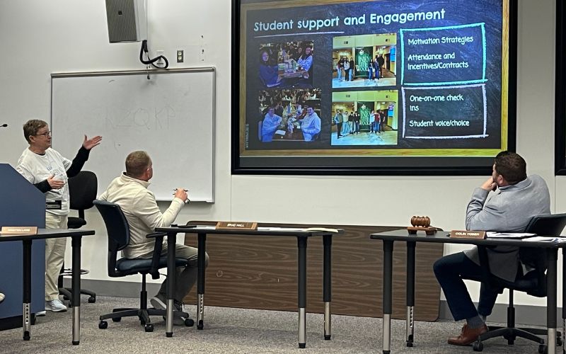 Board members learned about the highly successful credit recovery program offered at BHS. Bellefontaine High School Guidance Counselor Paula Shaw delivered a passionate presentation on the Opportunity Program. The grant-funded program serves high school students from 3-5 p.m. Monday through Thursday. Shaw shared that 42 students have graduated from BHS since the program’s inception in ’22-’23. These students have struggled in a traditional classroom. Many have flourished through the one-on-one attention offered in the Opportunity Program. Shaw detailed how students’ attendance and grade point average have steadily increased over the last three years. The average attendance rate jumped from 63 to 83 percent, while the average GPA went from 1.5 to 2.4. The after-school program is staffed by 12 BCS teachers. Shaw is the program manager. Sarah Gossard is the site manager.