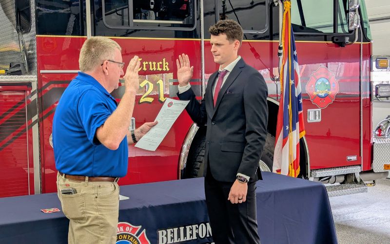 On Monday, the Bellefontaine Fire Department welcomed a new member to its ranks as Mayor Dave Crissman officially swore in firefighter Noah Florhe during a brief ceremony.