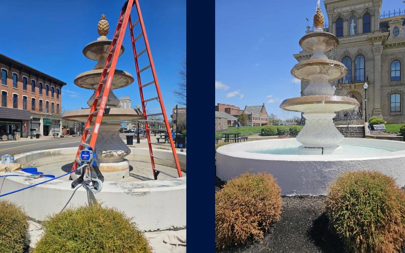 On Thursday, workers from the City of Bellefontaine took advantage of the beautiful spring weather to revamp the concrete fountain in downtown.