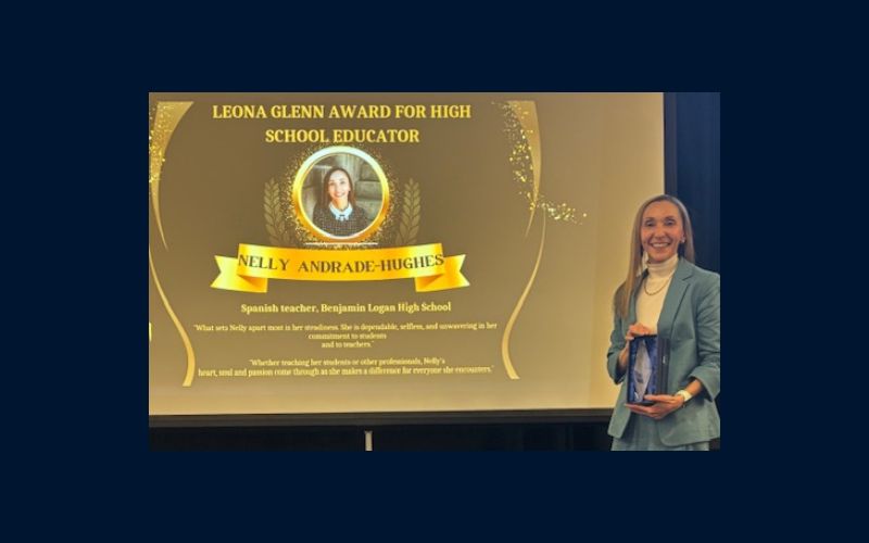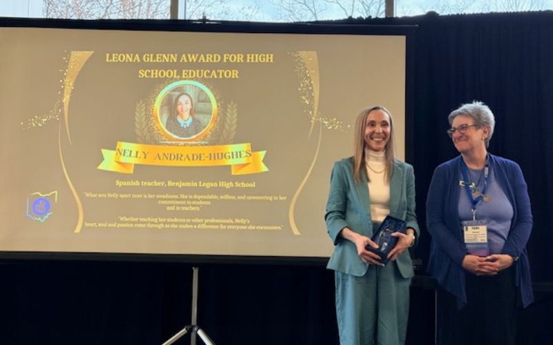 Nelly Andrade-Hughes, a Spanish teacher at Benjamin Logan High School, has been named the recipient of the Leona Glenn Award for Outstanding High School World Language Educator by the Ohio World Language Association.