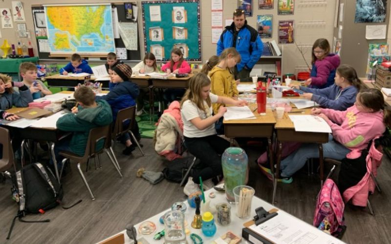 The exploration continued outdoors at the Benjamin Logan Land Lab despite the winter chill, where students engaged in observing and recording the subtle beauties of nature during winter, guided by Catherine Carter, Director of the Logan County Land Trust. Carter introduced the students to the practice of keeping a nature journal, encouraging them to record and reflect on their surroundings with a scientist’s eye.