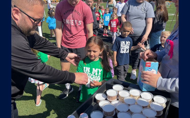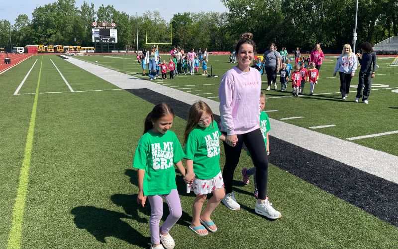 Over 30 seniors teamed up with Bellefontaine Elementary Preschool students for a play day at the stadium.