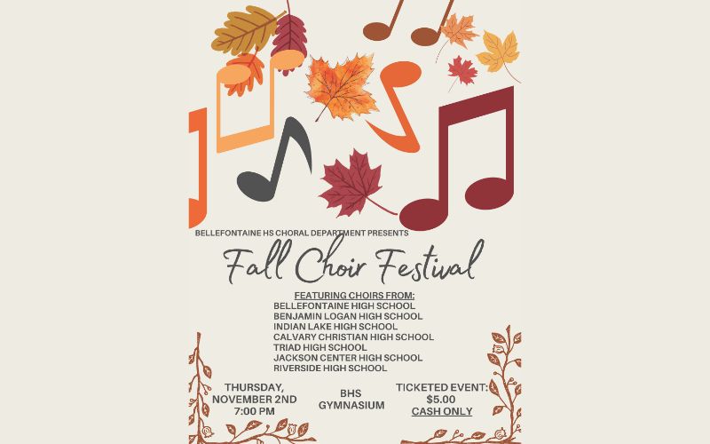 Bellefontaine High School will host the Fall Choir Festival on Thursday, November 2nd at 7 p.m. in the BHS Gymnasium.