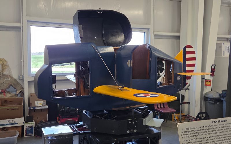 That mission extends beyond static displays. The museum emphasizes education through hands-on learning, including access to a historic flight simulator — an early model based on technology similar to player pianos, dating back to the early days of aviation training.
