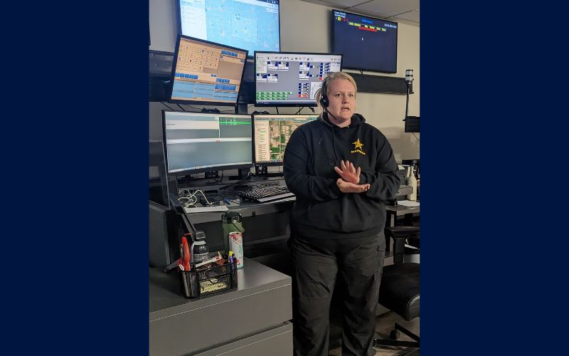 After looking at the jail side of the Logan County Sheriff’s Office, class members were also able to stop in the newly renovated communications room and talked with Communications Officer, Sarah Blair. Blair explained that Logan County has four 9-1-1 lines, and often times the public uses those lines for nonemergencies and expressed that the main line should be used. Blair explains: