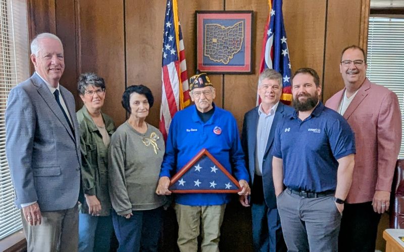 In a ceremony on Tuesday morning, the Logan County Commissioners recognized Army veteran Ray Stamm by presenting him with the American flag that flew above the Logan County Courthouse throughout the month of March.