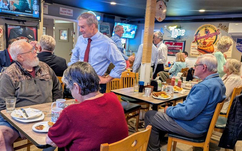 Congressman Jim Jordan made a brief stop at the Landing in Russells Point on Tuesday morning to update members of the Logan County GOP.