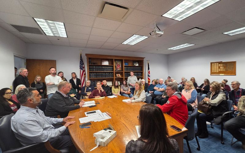 Commissioners Nino Vitale and Tim Cassady told attendees they recognize the community’s concerns regarding energy use, water impact, environmental questions, and quality of life. Both said they are actively exploring avenues related to the cancellation of the land agreement connected to the project.