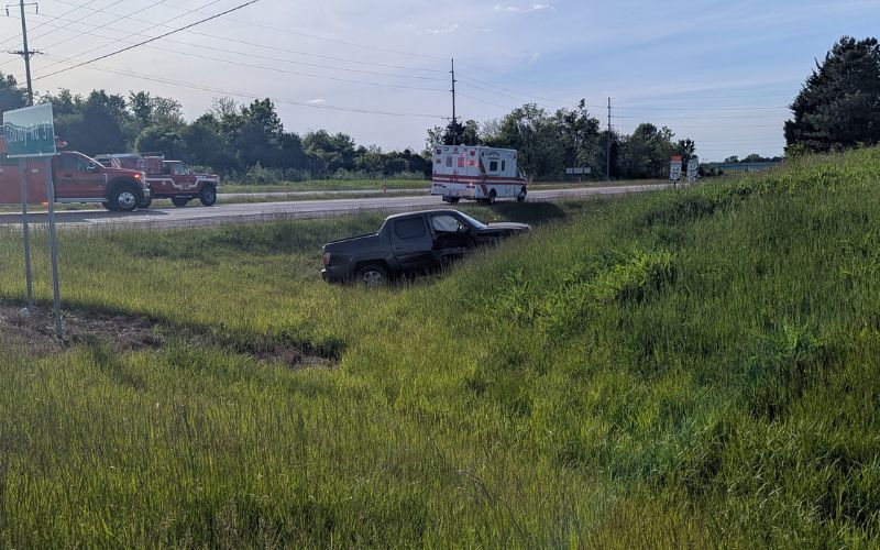 The Ford came to rest in the westbound lanes of U.S. 33.