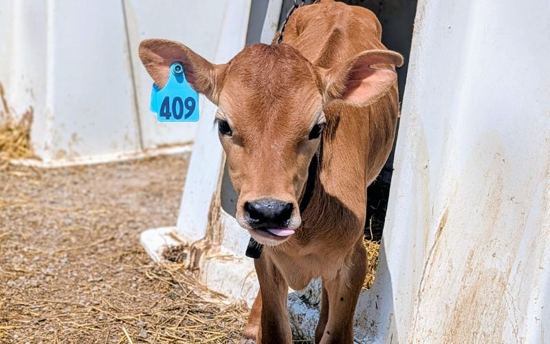 As we moved from barn to barn, with Zoey happily tagging along, Ella told me how their young kids give the cows names like “Marshmallow, Corn, Weedeater, Rosie, Rope, and Vanilla” — creative choices only little ones could dream up.