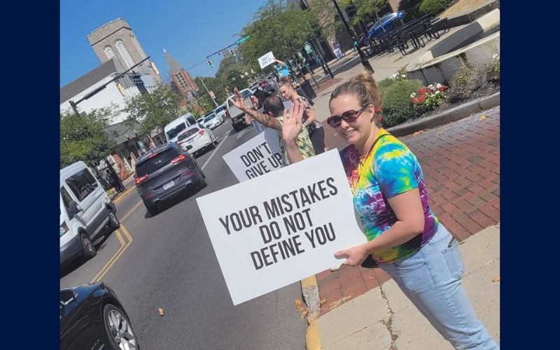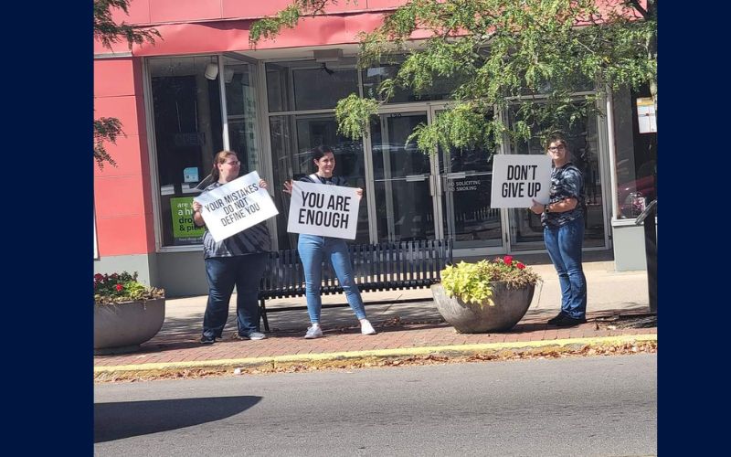 A diverse group of participants, including survivors, members of the behavioral health community, local faith leaders, students from Ohio Hi-Point Career Center, and representatives from the Recovery Zone of Logan County, came together to raise awareness and share encouragement with those passing by.