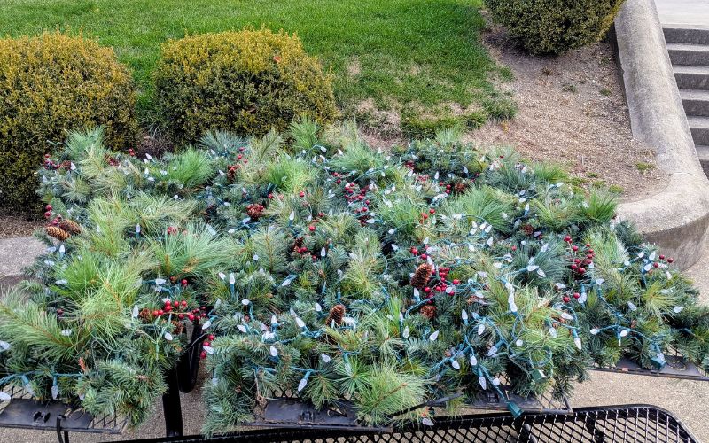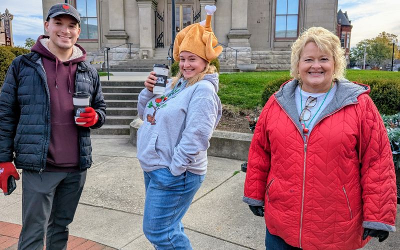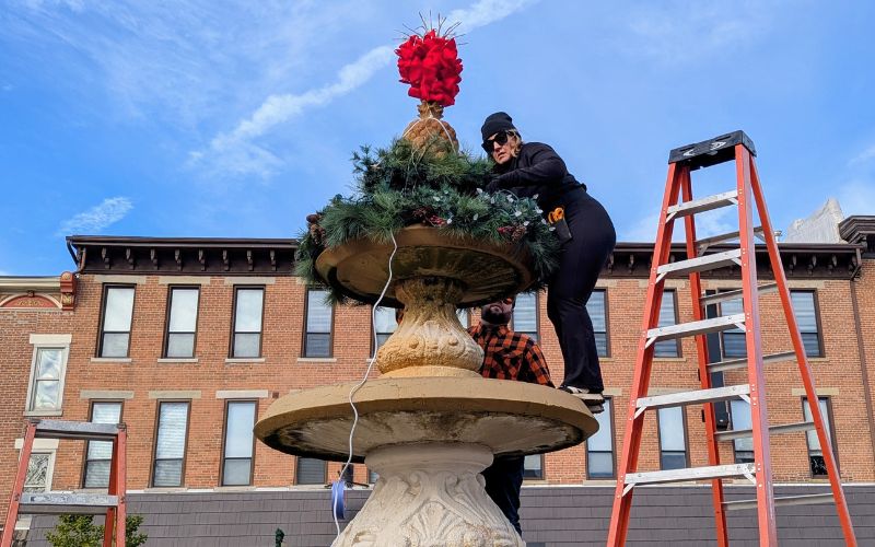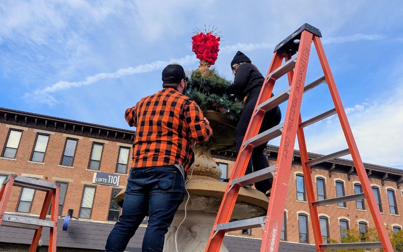 This year, business folks from downtown Bellefontaine also joined in, lending a hand as garlands were hung, lights were wrapped, and bows were fastened.