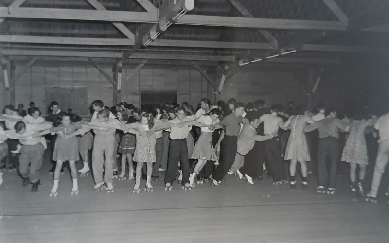 At that time, the rink operated only in the summer, heated by a pot-belly stove, with skaters rolling on wooden wheels to the sound of live organ music.