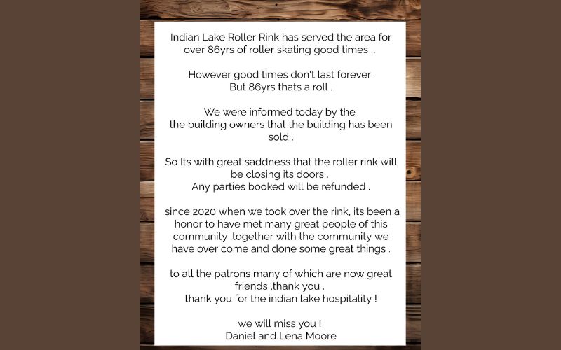 After more than eight decades of roller skating, memories, and community gatherings, the Indian Lake Roller Rink is closing its doors.