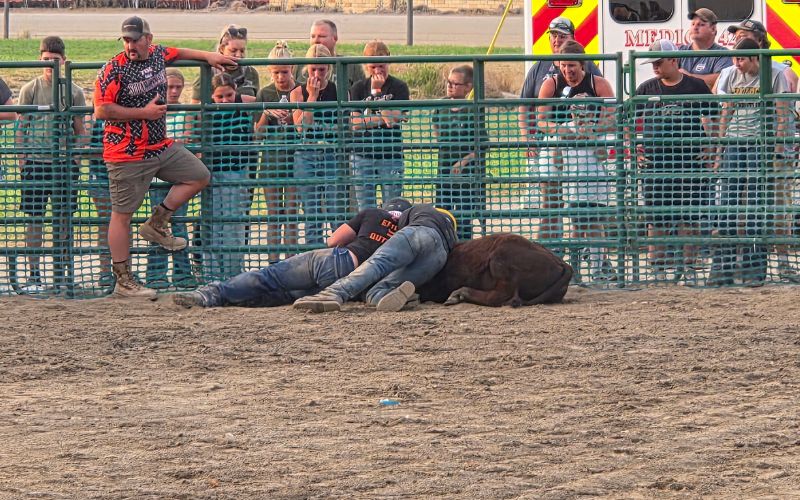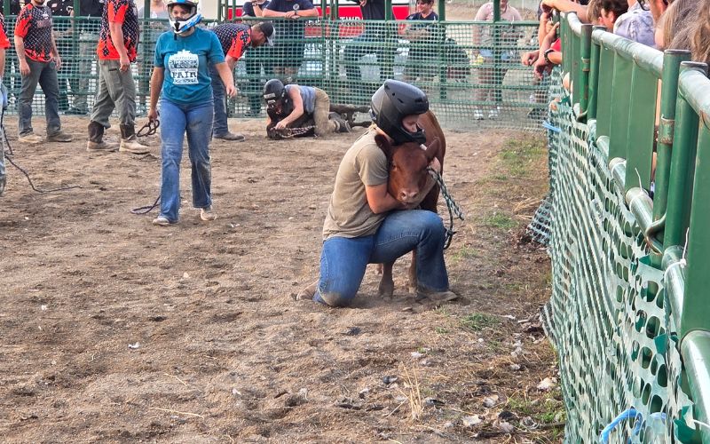 The main event of the evening was the final event, the cattle scramble.