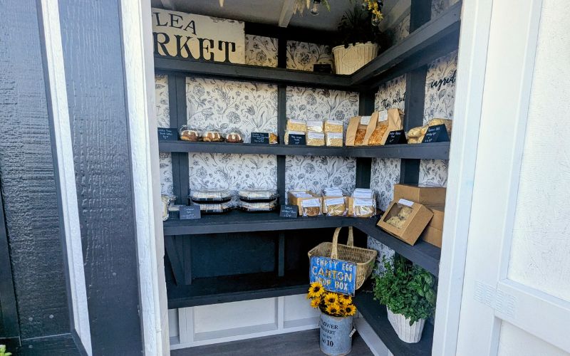 That includes everything from fresh veggies to meats, cheeses, wine, and even homemade jams.