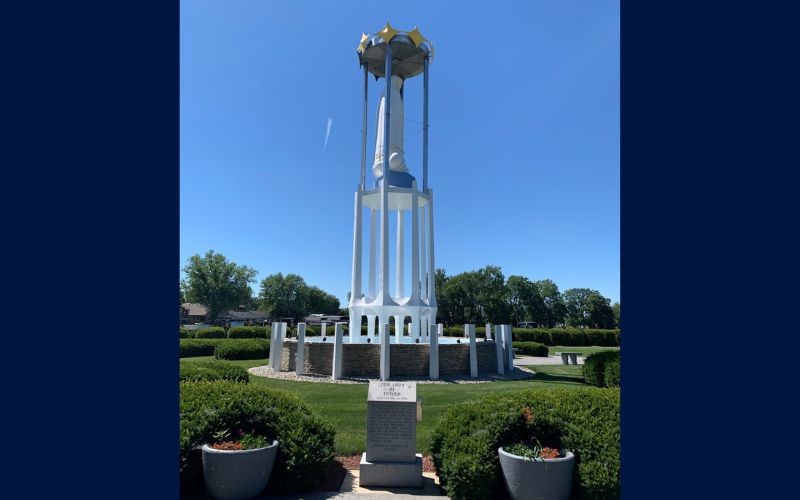 It featured a 43-foot tall monument with a 19-foot 6-inch fiberglass statue of Our Lady of Fatima on a concrete pedestal.