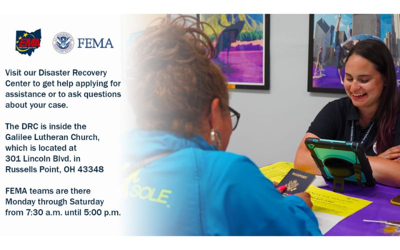The FEMA Disaster Recovery Center for Logan County will open on Monday, May 13th, at Galilee Lutheran Church – 301 Lincoln Blvd., Russells Point.