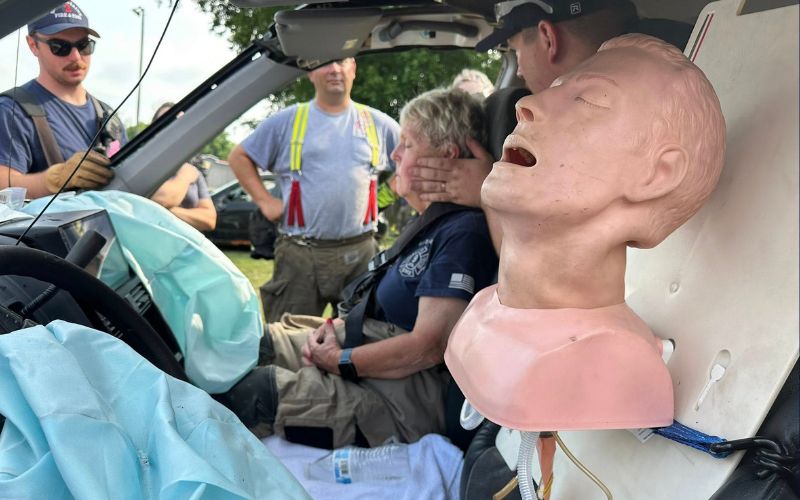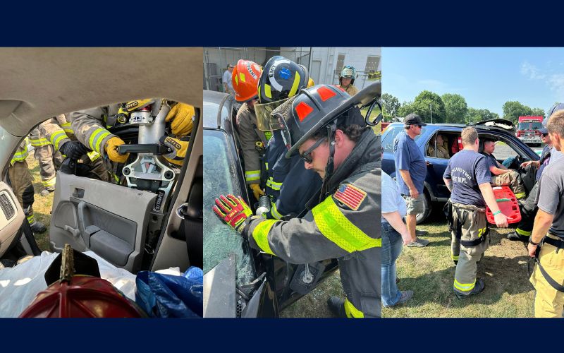 The morning began with students rotating through hands-on skill stations covering Extrication, HazMat, Scene Size-Up and Command, Vehicle Stabilization, and EMS care.