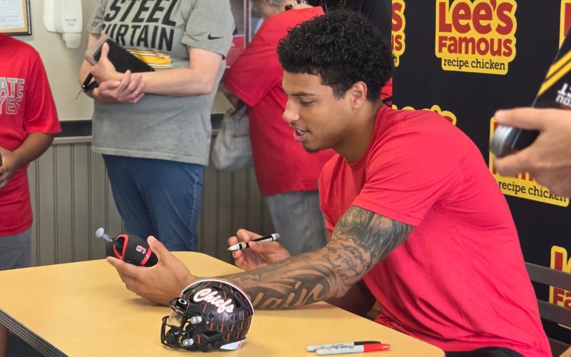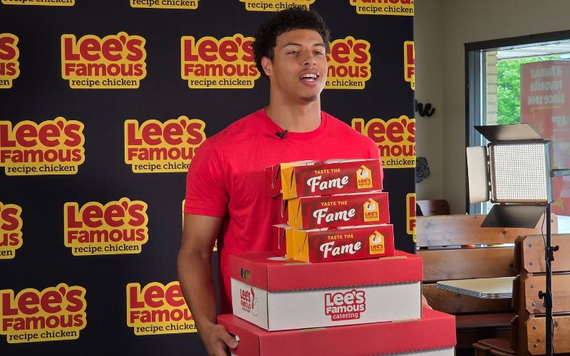 The event marked the kickoff of a new local Name, Image, and Likeness (NIL) partnership between St. Clair and Lee’s Famous Recipe Chicken. As part of the overall deal, Lee’s will work with St. Clair throughout the upcoming football season to engage fans and celebrate his continued success. The partnership feels special for St. Clair, as he’s a longtime fan of Lee’s and grew up sharing meals with his family at the hometown restaurant. His connection runs even deeper, as his uncle also worked closely with the Lee’s team through a former partnership with Pepsi, making the celebration especially personal.