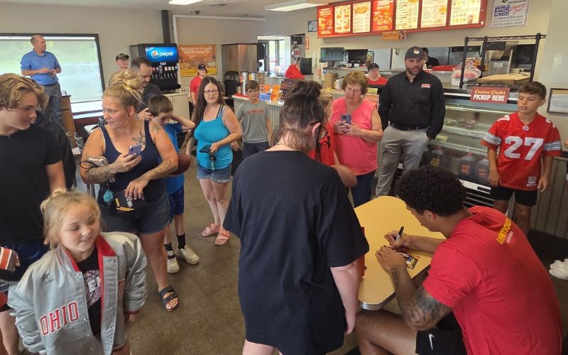Fans from throughout the area showed up in large numbers to support St. Clair. The precision passing QB signed autographs and took pictures during the afternoon, and he participated in a live radio remote with ESPN-WING 1410 out of Dayton. Keith Byars was there to support St. Clair and helped conduct the remote interview.