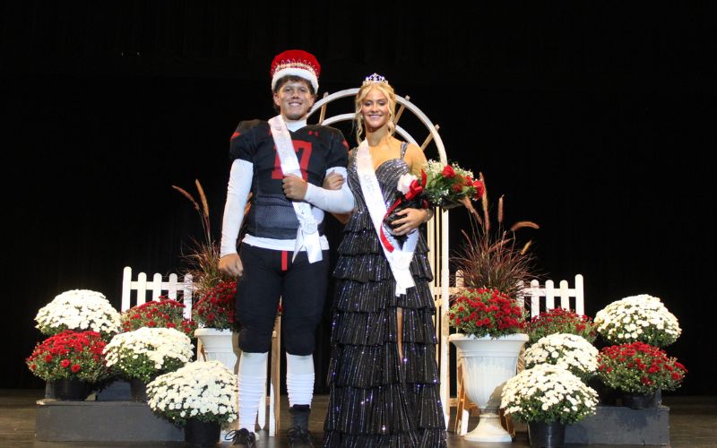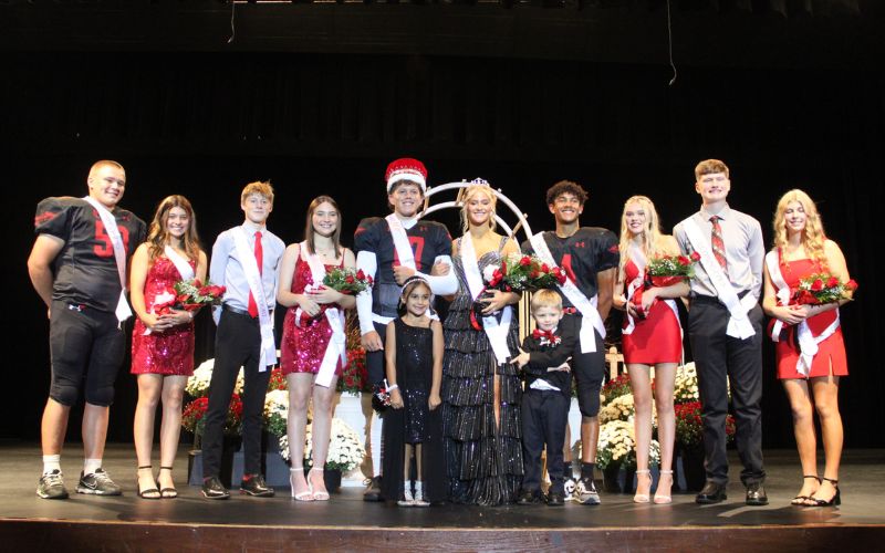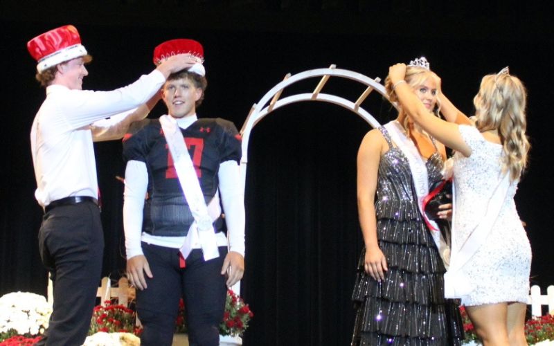 Congratulations to King Bryce Burton and Queen Halle Roby! The couple was crowned by 2023 King and Queen Camdon Tuttle and Katie Roby in front of cheering family and friends. Additional congratulations to the Freshmen Attendants Aaron Rapp and Bre Wisener, Sophomore Attendants Tyler Tidwell and Quinn Imm, Junior Attendants Joe Cummins and Lili Mackesy, and Senior Attendants Quest Clay and Haylee McCafferty!