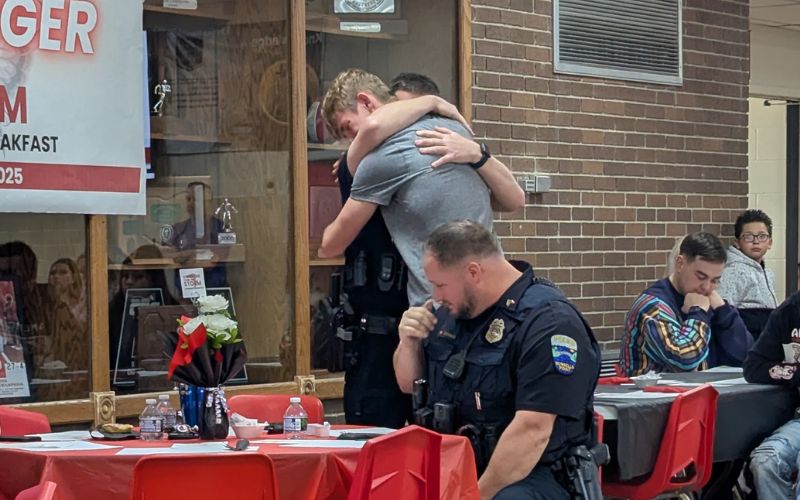 Friday morning, nearly 200 people from the Indian Lake community came together for a breakfast event at Indian Lake High School to honor first responders and residents on the first anniversary of the tornado that struck the region.
