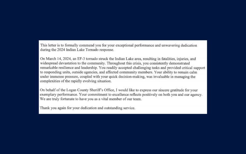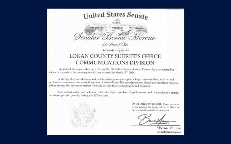 He passed along a letter of commendation to his dispatch staff and a letter of recognition from Senator Bernie Moreno to his entire staff.