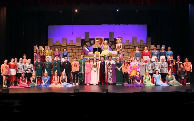 The production features a large cast led by seniors Alyssa Powell as Queen Aggravain, Riley Ross as Princess Winnifred, Lilly Wickline as Lady Larkin, Makenna Hurley as the Jester, Bandon Hutton as King Sextimus, and Evie Wagner as Lady Rowena.