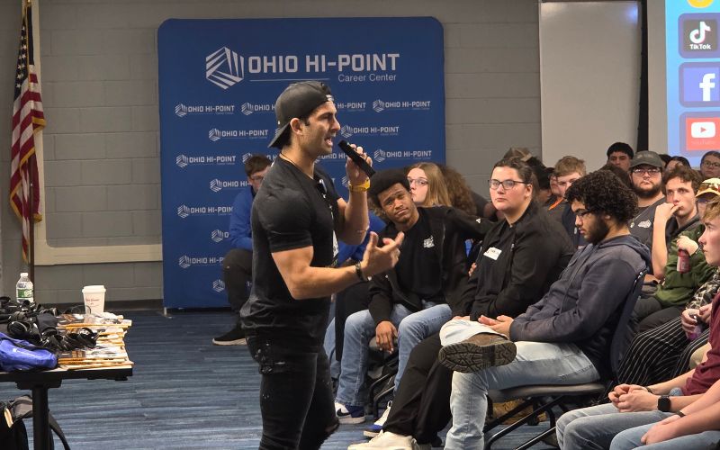 Motivational and mental health speaker Jordan Toma recently spoke to students at Ohio Hi-Point Career Center, sharing a personal story about overcoming learning challenges and building confidence. He often sums up his message with a phrase that has become central to his story: “My Struggle Is My Strength.”