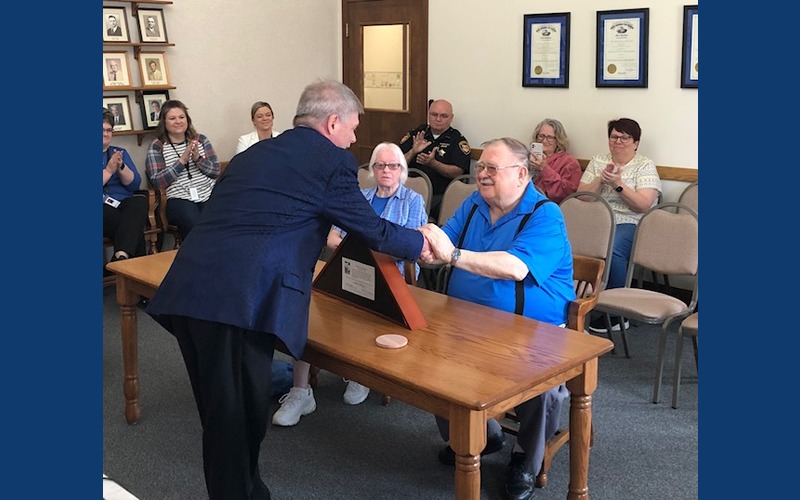 West Liberty resident Larry Lance was given a flag Thursday by the Logan County Commissioners.