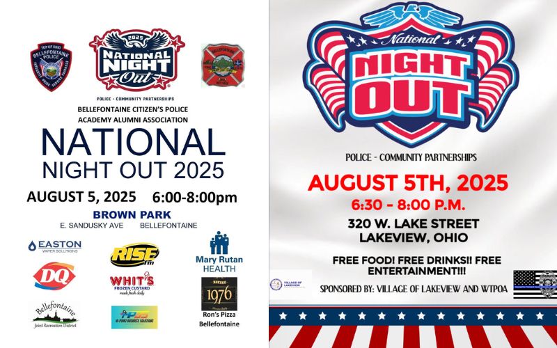 Bellefontaine’s Police and Fire Departments, along with the Citizens’ Police Academy Alumni, invite you to their annual National Night Out from 6 to 8 p.m.
